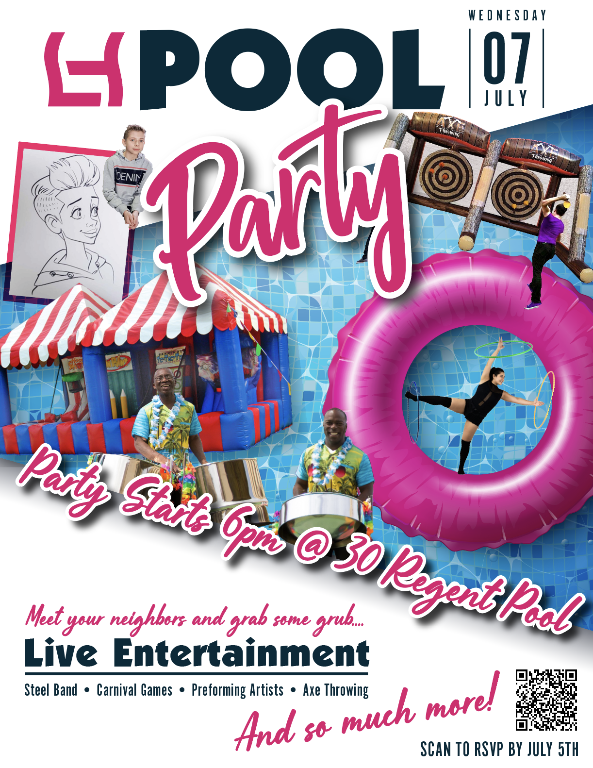 Bring your sunscreen and good mood! DATE: Wednesday, July 7 TIME: 6:00pm – 9:00pm WHERE: 30 Regent Poolside COST: Free for residents This is a resident and +1 only event. Free for residents. Last Day to RSVP: Monday, July 5th at 12 noon. Questions or Comments can be directed to [email protected]